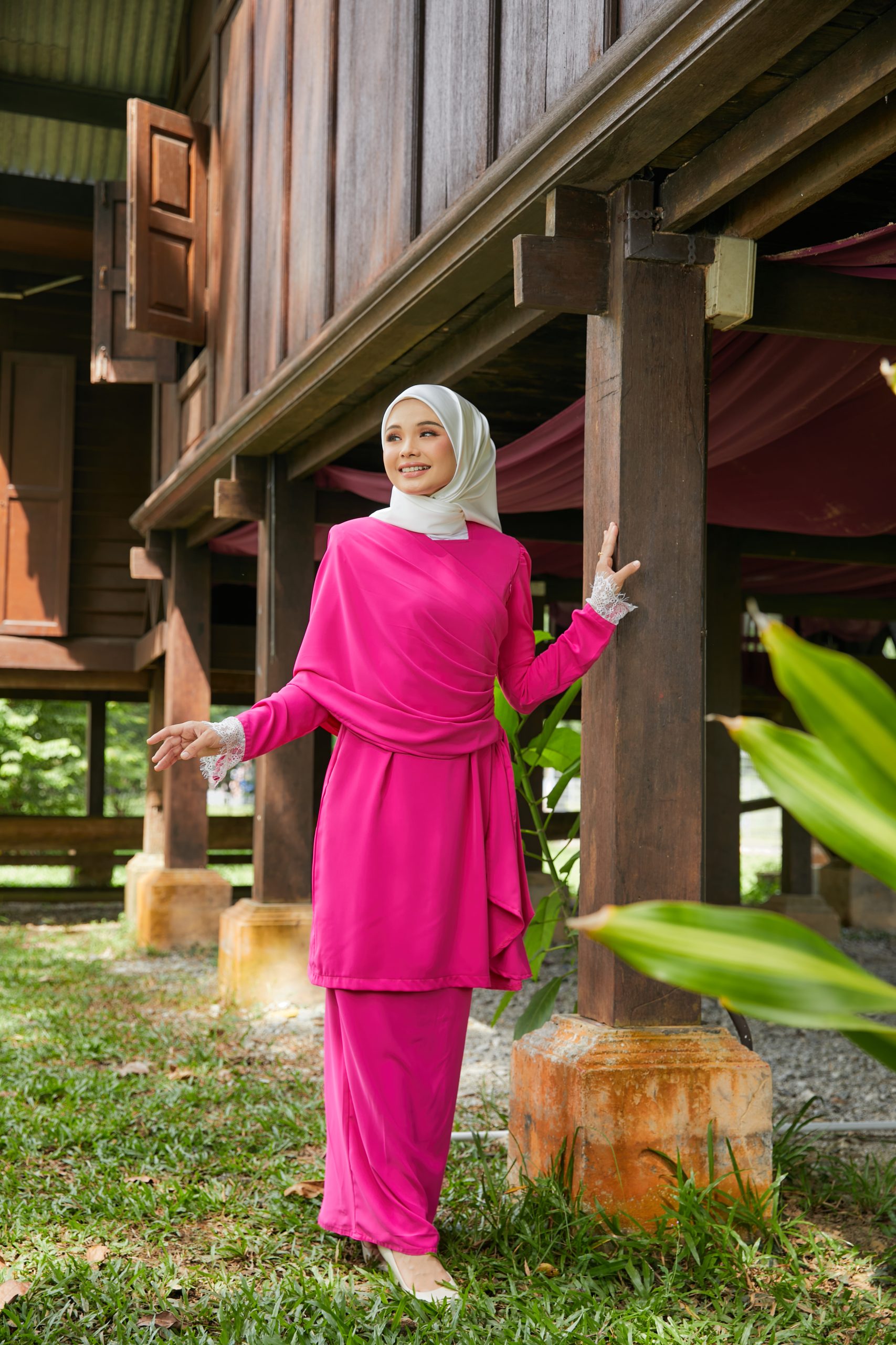 Made with polka silk, a comfortable material for a hot day & embellishing the elegance in you. Comes with lace at sleeve & puffy sleeves to bold a ‘Manis’ you during your Raya 2024.